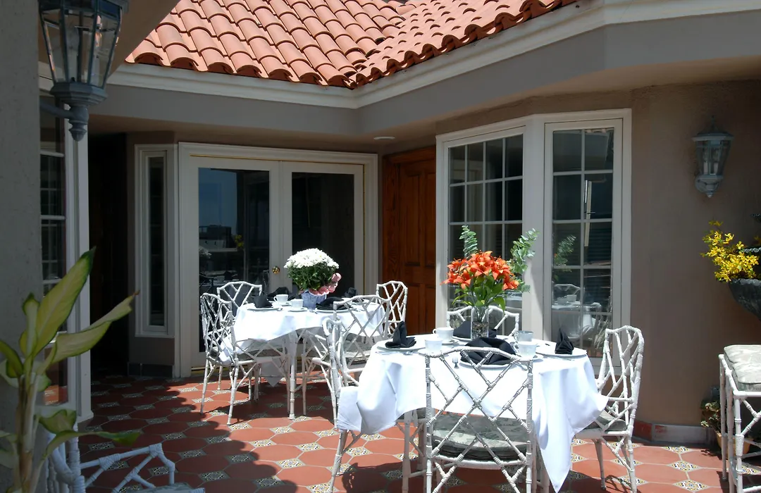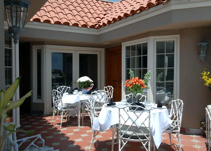 A free breakfast is served on the patio at the Doryman'S Oceanfront Inn. The bar Mutt Lynch's is a few steps from this Newport Beach hotel.
